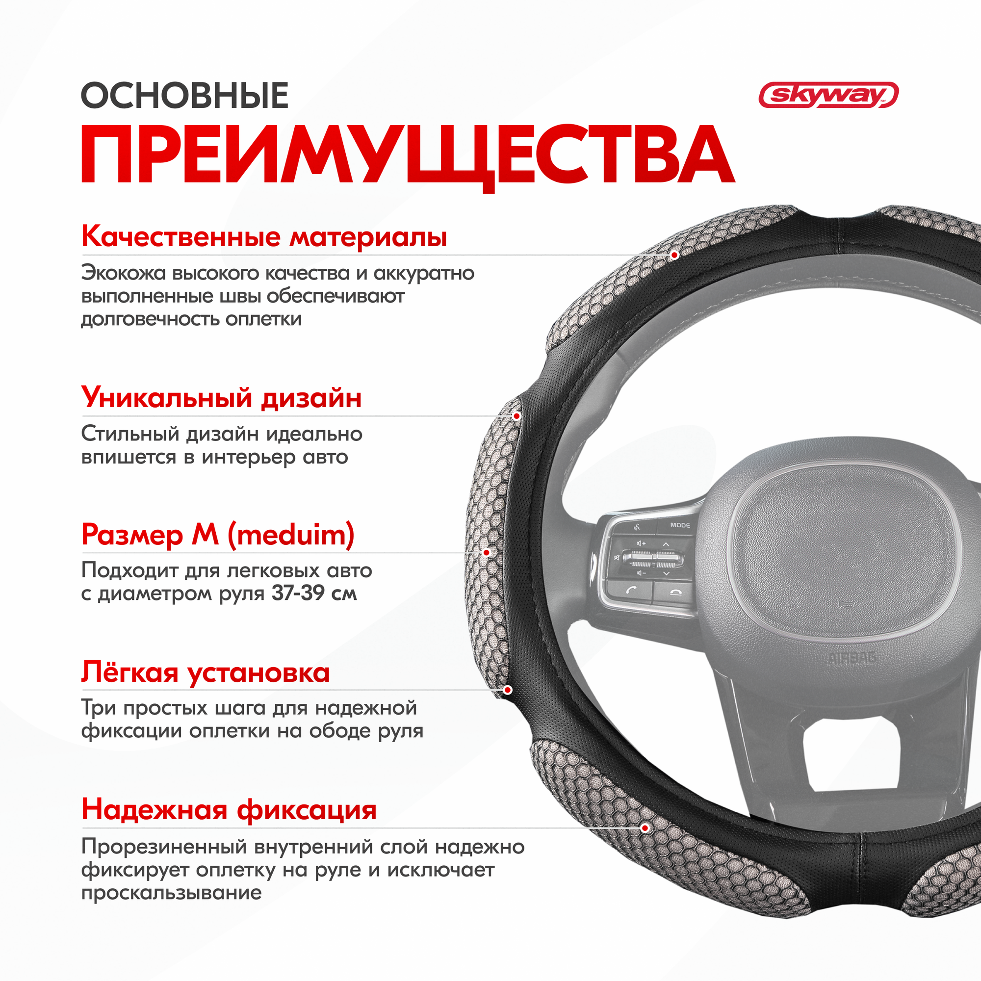 Оплетка руля SKYWAY S01102243 (размер: M)