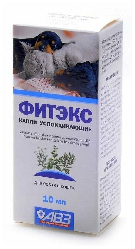 Капли успокаивающие АВЗ FITEX для собак и кошек 10мл (размер: 0.035)