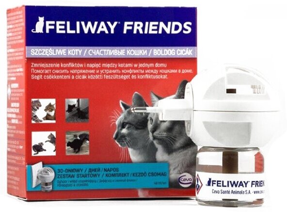 Сегодня получила с курьером Feliway friends. Старший кот агрессирует к младшему, обижает. Старалась их держать в разных комнатах. После включения аппарата старший заметно успокоился. Конечно он не стал дружелюбнее, но сегодня на младшего не кидался, хоть и порыкивал изредка, но нет того грозного подрагивание тела, как было раньше. Думаю, препарат действительно работает.