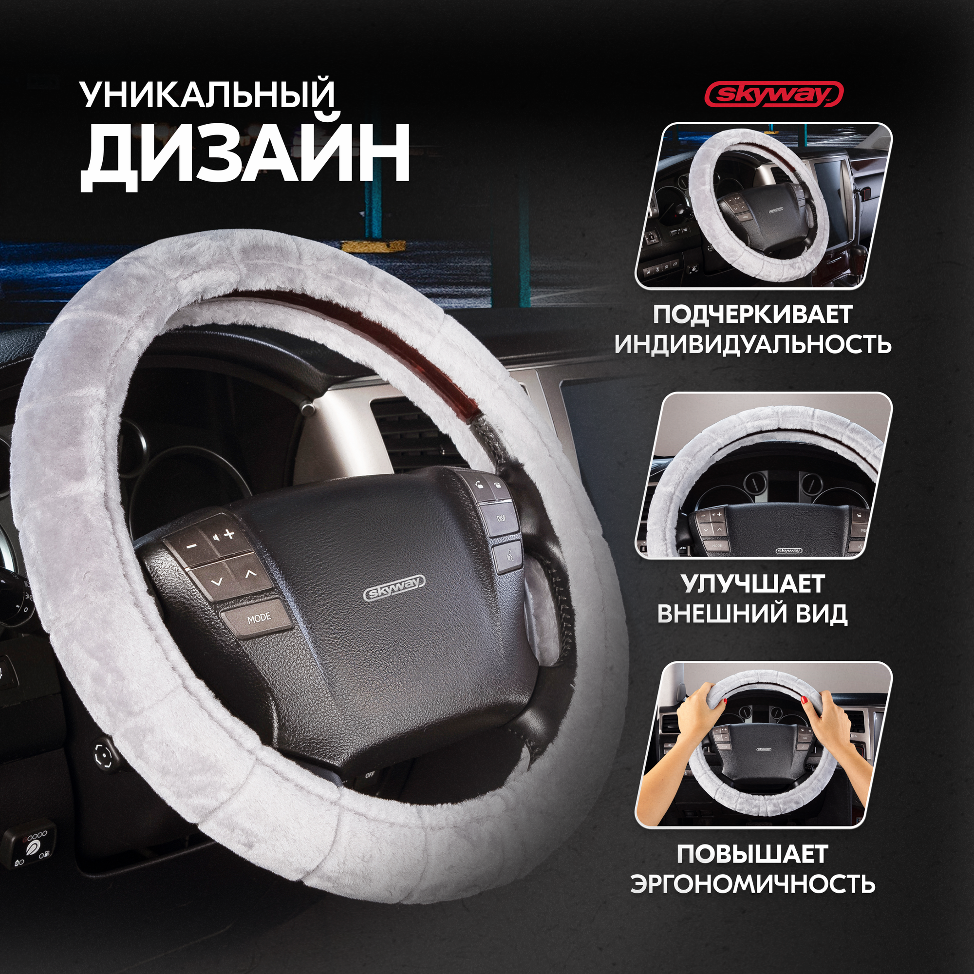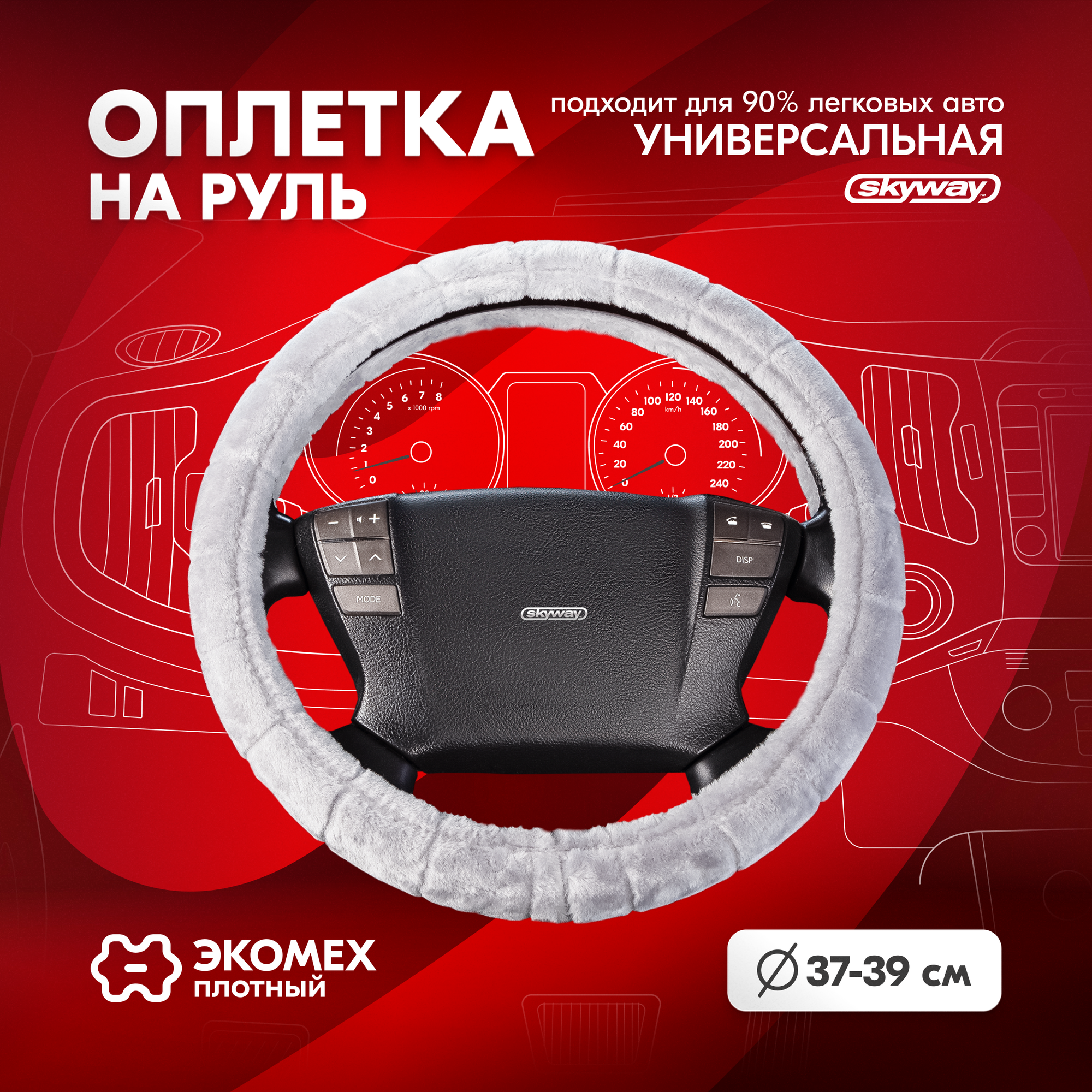 Оплетка SKYWAY Arctic-1 M Серая искусственный мех - обеспечивает надёжный контакт ладоней с ободом рулевого колеса, предохраняет его от повреждений, скрывает царапины и трещины, полученные в процессе эксплуатации. В производстве TM SKYWAY используются качественные, экологически чистые материалы. Аккуратно выполненные швы обеспечивают высокую долговечность. Меховая поверхность оплетки с невысоким ворсом, приятная на ощупь, не накаляется под воздействием солнечных лучей, нехолодная на ощупь в зимнее время года. Применение инновационных материалов на внутренней стороне оплетки исключает ее проскальзывание на рулевом колесе. Прострочка меховой оплётки с интересным выстриженным узором придаёт индивидуальность интерьеру автомобиля. Рекомендации производителей: выбирайте оплетку под размер вашего рулевого колеса. Неверно выбранный размер может привести к ее проскальзыванию, а также невозможности снять или надеть оплётку на руль. Материал: искусственный мех Цвет: серый Размер: M (для рулевого колеса 37-39 см)Гарантия 30 дней
