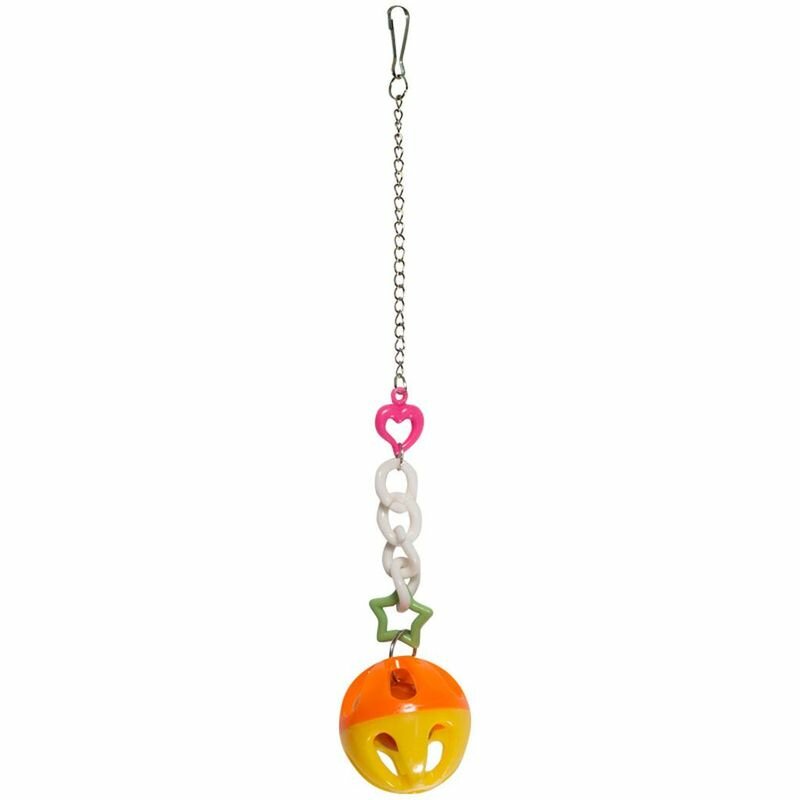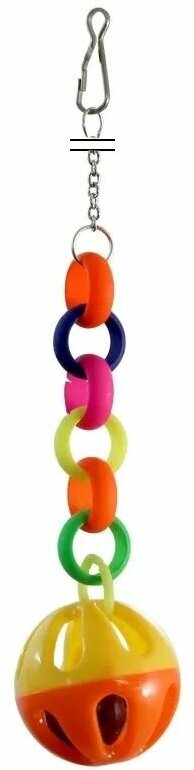 Подвешиваемая за карабин игрушка для птиц в виде цепочки из пластиковых украшений со "звонким" шариком.