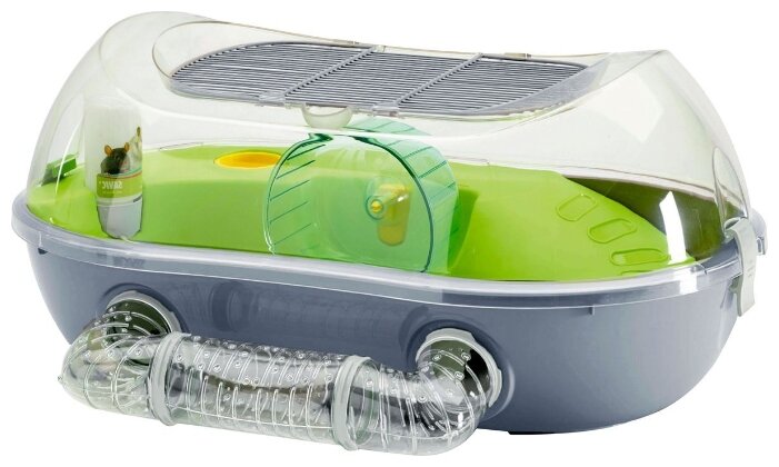В Spelos XL Metro встроены все необходимые для жизни животного аксессуары: домик, туннель, колесо для тренировок, кормушка, поилка, дополнительный внешний туннель.