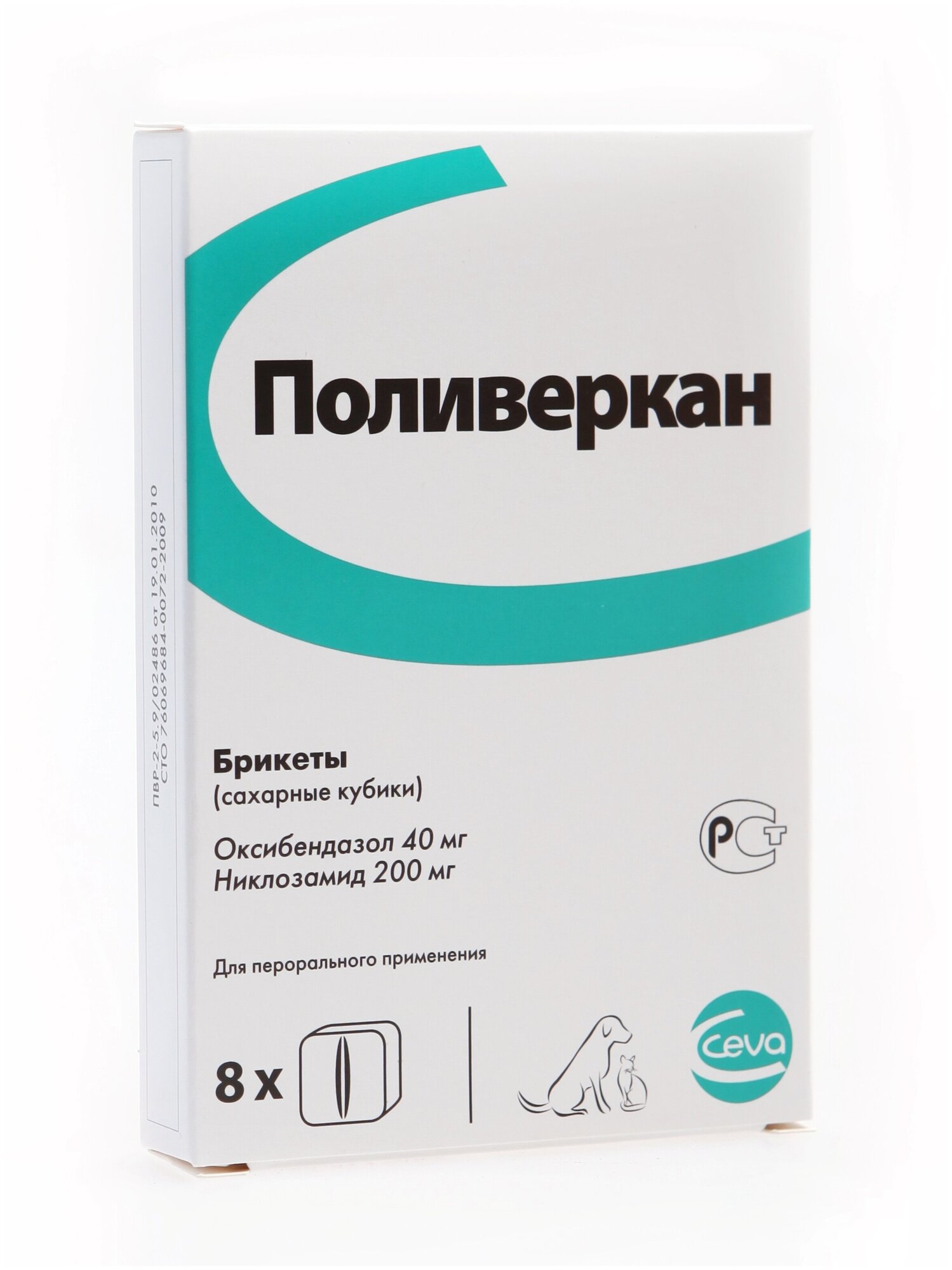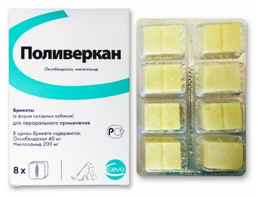 Поливеркан (Polyverkan) — Профилактика и лечение внутренних гельминтов у собак, кошек, щенков и котят. Поливеркан в сахарных кубиках уничтожает круглых гельминтов часто присутствующих в пищеварительном тракте молодых животных и плоских гельминтов, чаще встречающихся у взрослых животных, один сахарный кубик на 10 кг веса.