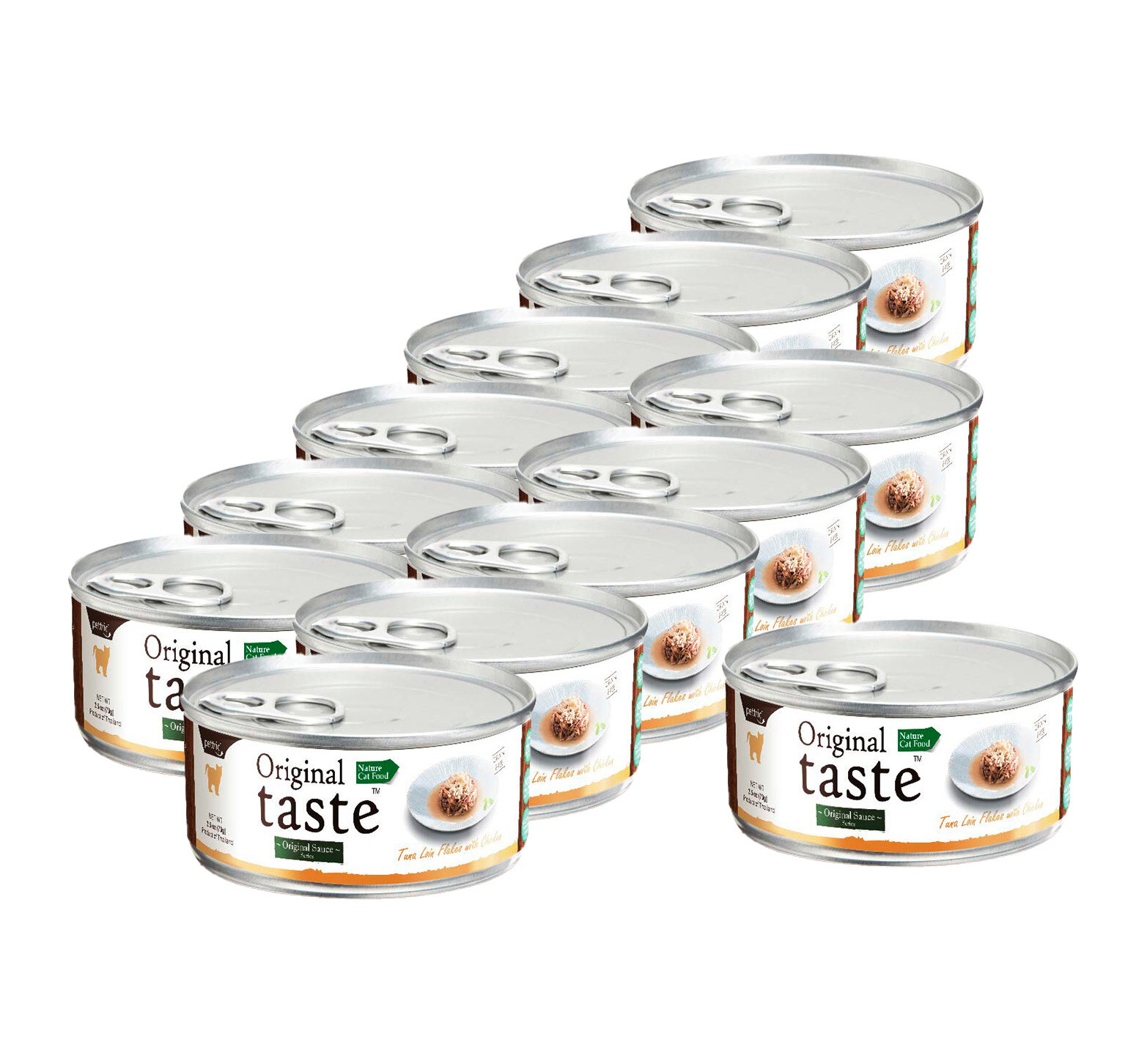Серия Original Taste в оригинальном авторском соусе. 80 % - мясо белого тунца, 20 % - мясо красного тунца, куриная грудка.