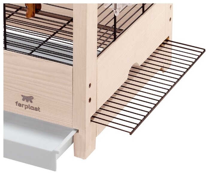 - Оборудована глубоким деревянным поддоном с выдвижным пластиковым подносом для легкой уборки.