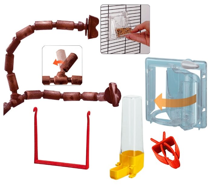 - Клетка Giulietta комплектуется необходимыми аксессуарами и готова принять ваших пернатых друзей в любое время: внутри вы найдете съемные поворотные кормушки, поилку, прищепку для овощей, гибкие модульные пластиковые жердочки, которые вы можете смоделировать по вашему предпочтению.