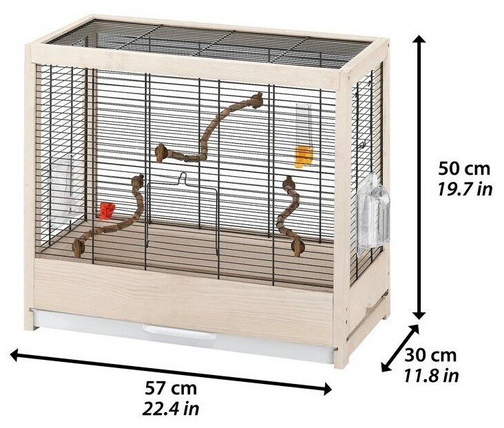 Клетка для птиц базового дизайна с колоннами и каркасом из прочной древесины. Клетка среднего или большого размера подойдет для размещения канареек и маленьких экзотических птиц. Оборудована глубоким деревянным поддоном с выдвижным пластиковым подносом для легкой уборки. Небольшая передняя дверка облегчит процесс ежедневной уборки. Клетка Giulietta комплектуется необходимыми аксессуарами и готова принять ваших пернатых друзей в любое время: внутри вы найдете съемные поворотные кормушки, поилку, прищепку для овощей, гибкие модульные пластиковые жердочки, которые вы можете смоделировать по вашему предпочтению.