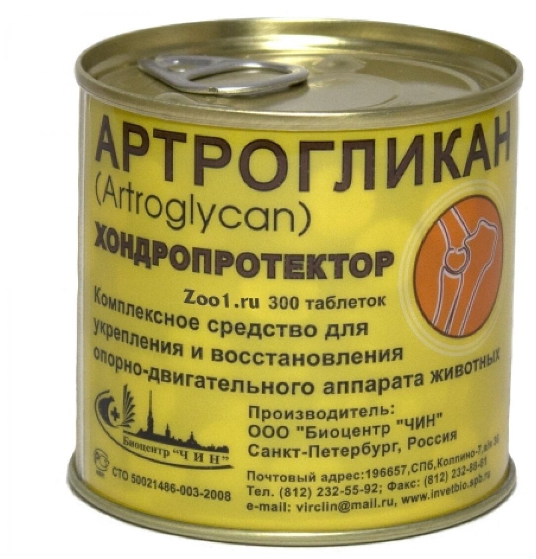 Препарат БИОЦЕНТР АРТРОГЛИКАН хондропротектор для собак, кошек, крыс и хорьков 300таб (размер: 0.08)