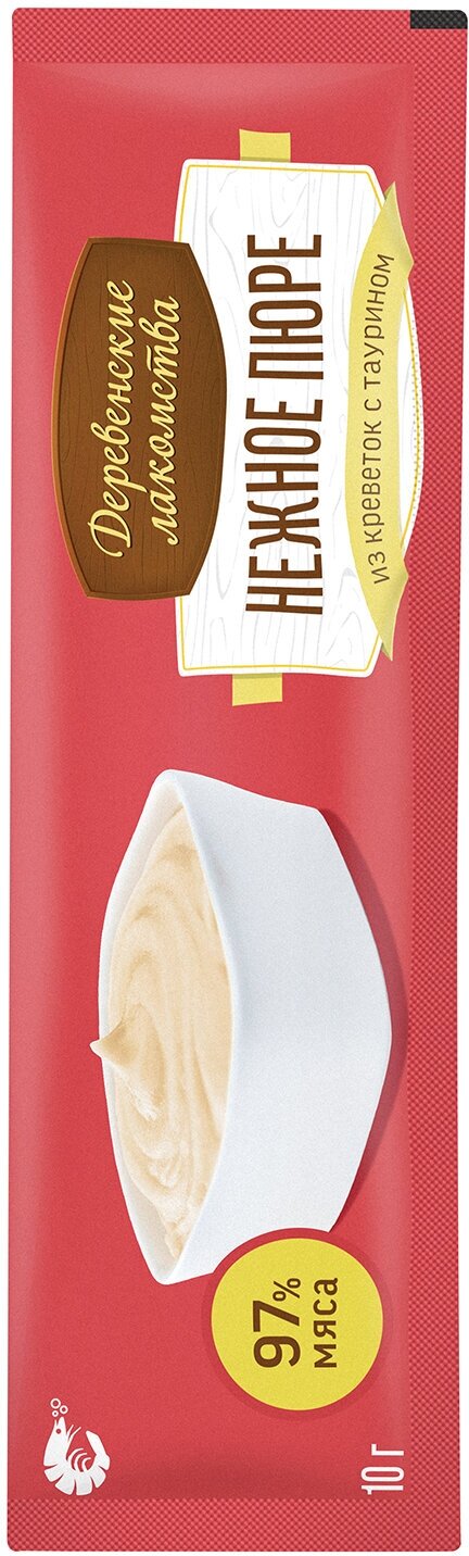 Лакомство для кошек ДЕРЕВЕНСКИЕ ЛАКОМСТВА Нежное пюре из креветок 4х10г (размер: Для всех пород)