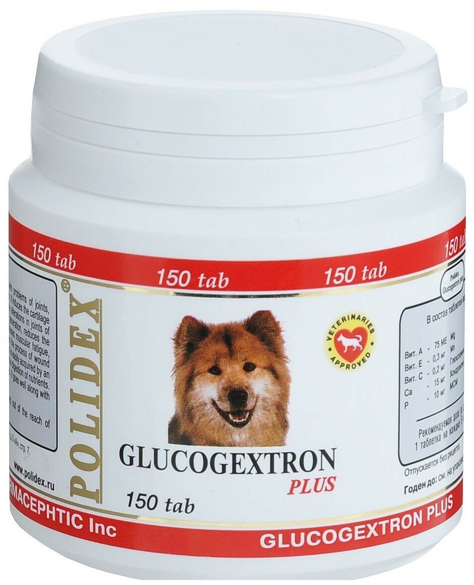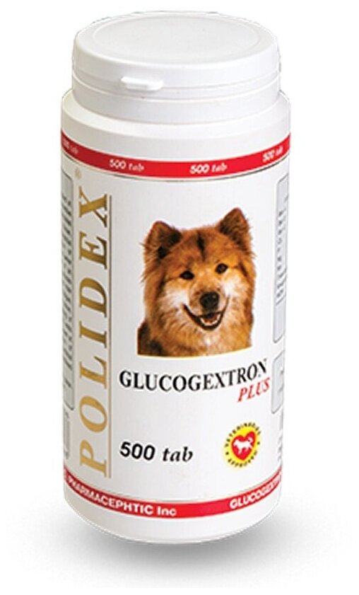 Действие препарата направлено на профилактику и лечение заболеваний опорно-двигательного аппарата. Glucogextron plus (Полидекс Глюкогекстрон плюс) оказывает комплексный лечебный эффект, так как содержит глюкозамин, хондроитин и метилсульфанитметан (МСМ). Глюкозамин гликопротеиновое соединение глюкозы и аминокислоты глютамина, участвует в построении хрящевой ткани. Хондроитин имеет свойство сохранять воду в толще хряща, ингибировать действие специфических ферментов, разрушающих соединительную ткань. Глюкозамин и хондроитин обладают противовоспалительным и анальгезирующим действием. Хороший терапевтический эффект наблюдается обычно через месяц после применения препарата. Назначается, в основном, щенкам при ростовых проблемах, различных врожденных патологиях суставов, при травмах опорно-двигательного аппарата, а так же старым собакам 2-3 раза в год, как средство профилактики артритов и артрозов, как вспомогательное средство на фоне основного лечения.