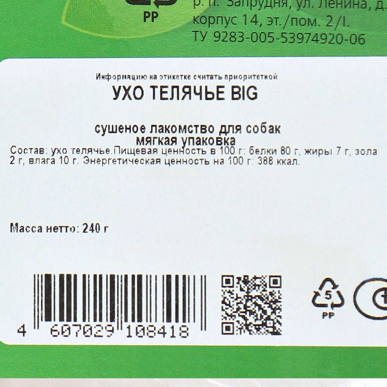Лакомство для собак TITBIT Ухо телячье BIG - мягкая упаковка