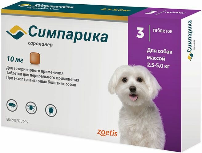 | Состав | в 1 таблетке в качестве действующего вещества сароланер 10 мг, а также вспомогательные вещества: лактозы моногидрат, натрия карбоксиметил-крахмал, кремния диоксид коллоидный, магния стеарат и вкусоароматическую гранулированную основу. |