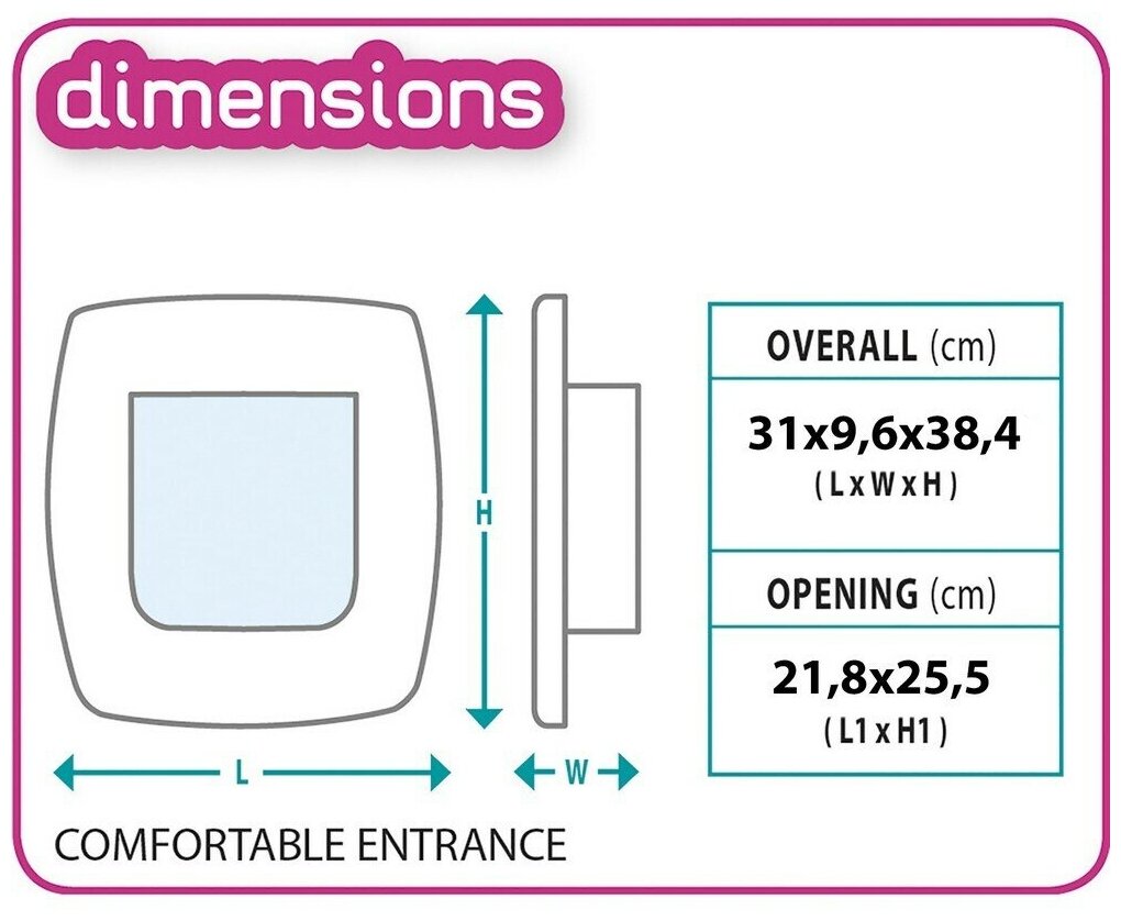 - Размеры: габариты 31 x 9,6 x 38,4см, проем 21,8 x 25,5 см.