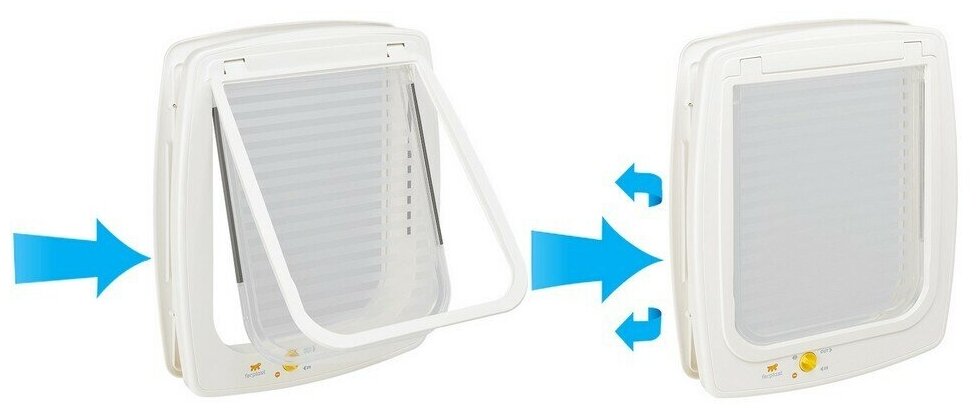В моделях Swing 5 и 7 имеется индикатор последнего входа-выхода животного - специальный флажок в нижней части дверки, который поможет вам понять, где находится ваш питомец.