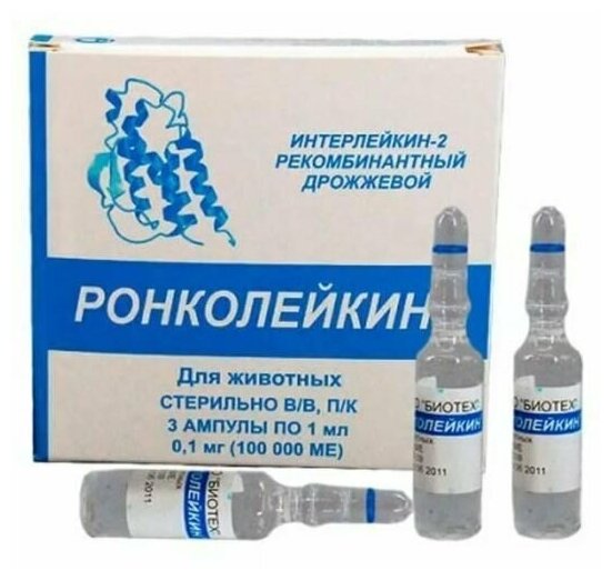 Лекарственный препарат для кошек и собак БИОТЕХ Ронколейкин 50 000 МЕ ампула 1мл (размер: 0.016)