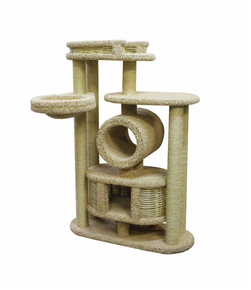 Подарите вашим пушистым любимцам настоящий замок для их игр и отдыха! Комплекс «Бобоша» — это множество интересных местечек, среди которых котик сможет найти уголок для сна, удобную зону для ухода за коготками, обзорную площадку. Внизу комплекса находится уютный домик, куда котик сможет спрятаться. Над ним располагается труба, которую можно использовать на игр целого кошачьего семейства или сна. Выше установлена удобная ступенька, а сбоку зафиксирован мягкий гамак, который вы сможете вращать самостоятельно. Завершает конструкцию просторная лежанка, с которой любимец сможет обозревать помещение и наблюдать за происходящим.
