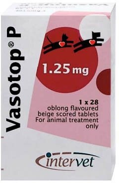Кардиопрепарат INTERVET Вазотоп P для кошек и собак 1,25мг, 28таб (размер: 0.039)