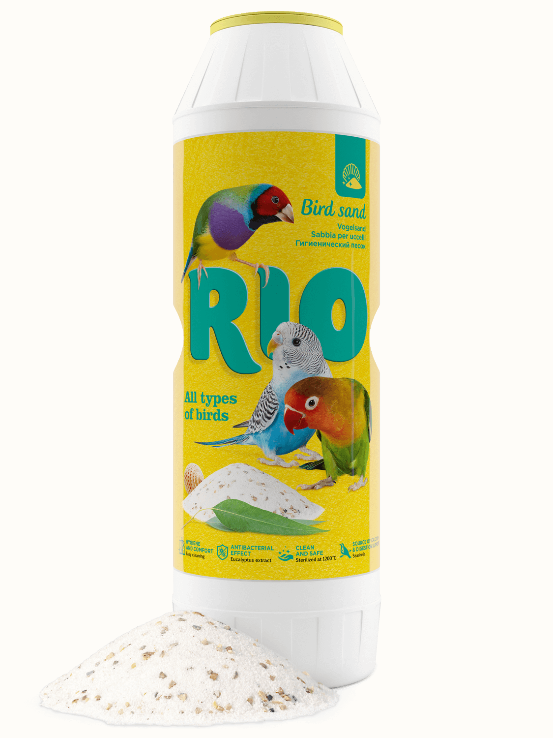 Стерилизованный при температуре свыше 1200° С Гигиенический песок RIO с экстрактом эвкалипта является прекрасным средством для поддержания чистоты и свежести в клетке. Экстракт эвкалипта не только обеспечивает приятный запах в клетке, но также предотвращает рост и развитие бактерий и паразитов на теле птиц: клещей, пухо- и пероедов. Ракушечник, добавленный в песок, выступает как полезный источник кальция и других минеральных веществ, а также улучшает пищеварение.