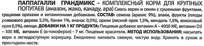 | Наименование модели | Pappagalli для крупных попугаев комплексный |