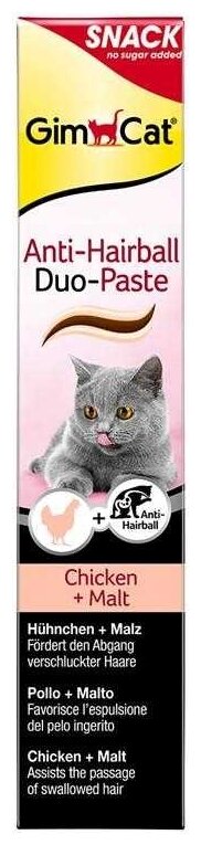 Паста GIMBORN GimCat Duo для выведения шерсти для кошек курица+солод 50г