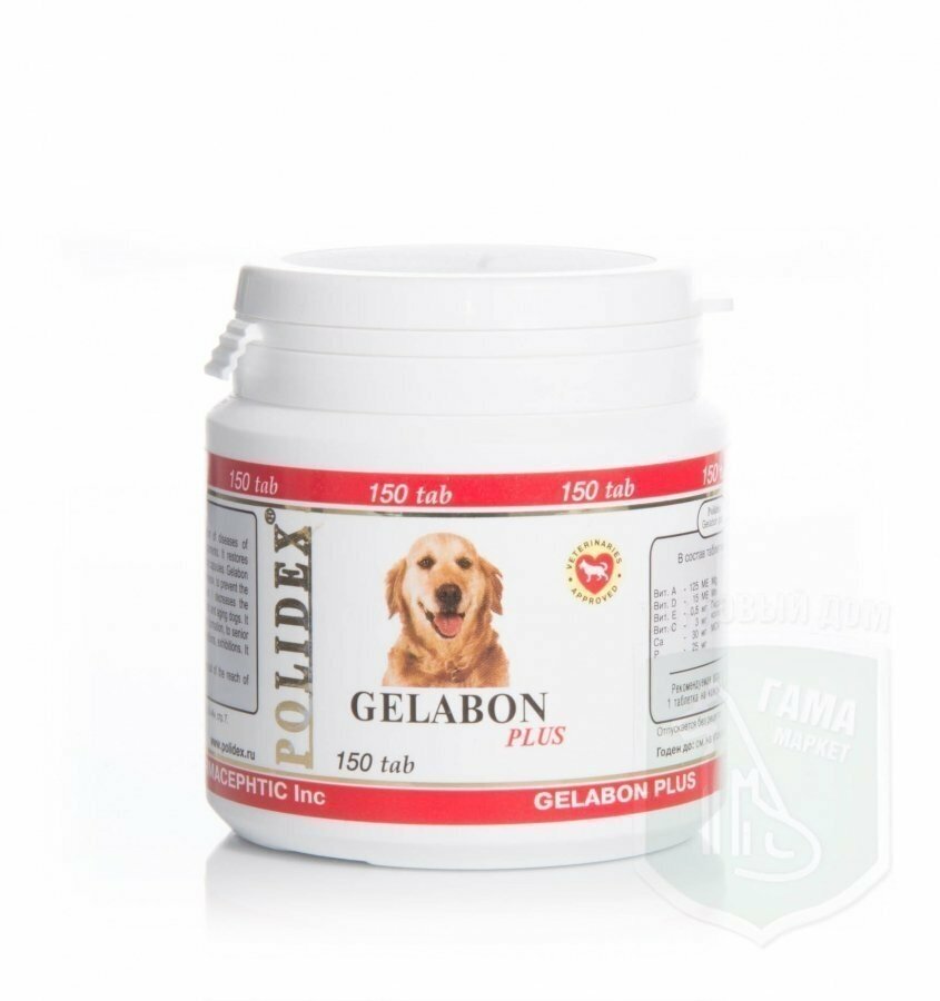 Polidex Gelabon plus (Гелабон плюс) профилактика и лечение заболевания костей, суставов. Обеспечивает эффективную профилактику заболеваний хрящевых поверхностей суставов, костей, связок. Восстанавливает повреждения внутрисуставных хрящей, способствует устранению "размета передних конечностей", профилактике дисплазии суставов, правильной постановке ушных раковин. Предотвращает вымывание кальция из костной ткани взрослых и стареющих собак. Рекомендуется щенкам до полного формирования костяка, стареющим собакам, а также подвижным собакам, участвующим в соревнованиях, выставках. Не содержит искусственных красителей.