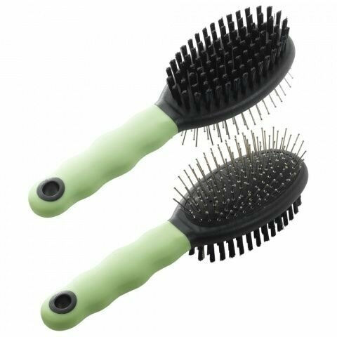 Для отличного состояния шерсти вашего питомца разработана двусторонняя щетка GRO 5798, с одной стороны с закругленными металлическими зубьями для защиты от повреждений кожи, с другой - с мягкой щетиной для придания блеска шерсти. Подходит для кошек с короткой, средней и длинной шерстью. Благодаря обновленной упаковке и цвету вы легко можете выбрать нужный вам товар - товары с зеленой ручкой предназначены для груминга кошек.