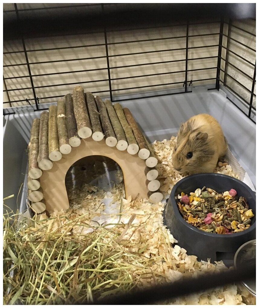 Состав: натуральные веточки лесного ореха, фанера. Для грызунов жизненно важно стачивать резцы, так как у многих из них они растут всю жизнь, иногда верхние резцы растут со скоростью до 2 мм в неделю и должны стачиваться при контакте с пищей, естественной средой обитания или игры с натуральными материалами. Ветви орешника являются естественным средством для стачивания зубов у грызунов и кроликов. Изгрызание ветвей орешника гарантирует ежедневный уход за зубами животных, при этом обеспечивая занятия питомцам на длительное время. Ветви деревьев - естественные друзья грызунов и кроликов, которые помогают им содержать рот и зубы здоровыми, а орешник - естесственый "напильник" для подавляющего числа видов, содержащихся в квартирах. Заведите вместе с домиком природную "зубную щетку" для полости рта зверька, так ему необходимую. Как занять домашнего любимца надолго, чтобы он не скучал? Позвольте маленькому созданию наблюдать за всем происходящим с крыши, это позволит избежать проблем с нервной системой и будет дополнением к прогулке по клетке. Зверушки любят тусить на крышах домиков, что обеспечивает им инстинктивно необходимый обзор. На домик легко забраться не травмировав лапки. Подходит для малых и средних питомцев, выдерживает большие нагрузки. В домике отличная естественная вентиляция, по комнате вместо запаха животного будет распространяться запах леса, что позволит сладко спать и вам и вашему питомцу. Надежное укрытие для вашего любимца, идеальное место для сна и отдыха! Позволяет прекрасно отдохнуть и выспаться, укрывшись от посторонних глаз. Внутри тепло, свежо и вкусно пахнет, материалы изделия будут подавлять запах от животного и способствовать нормальному аромату в комнате. Условия хранения: в сухом прохладном помещении.