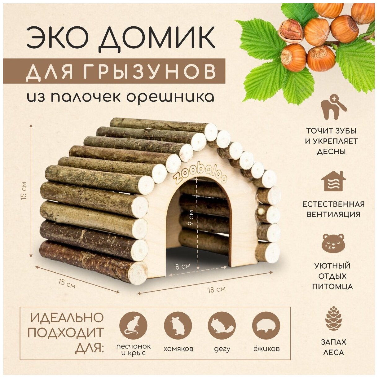 Домик для грызунов ZOOBALOO дерев ромб средний 18х15х15см