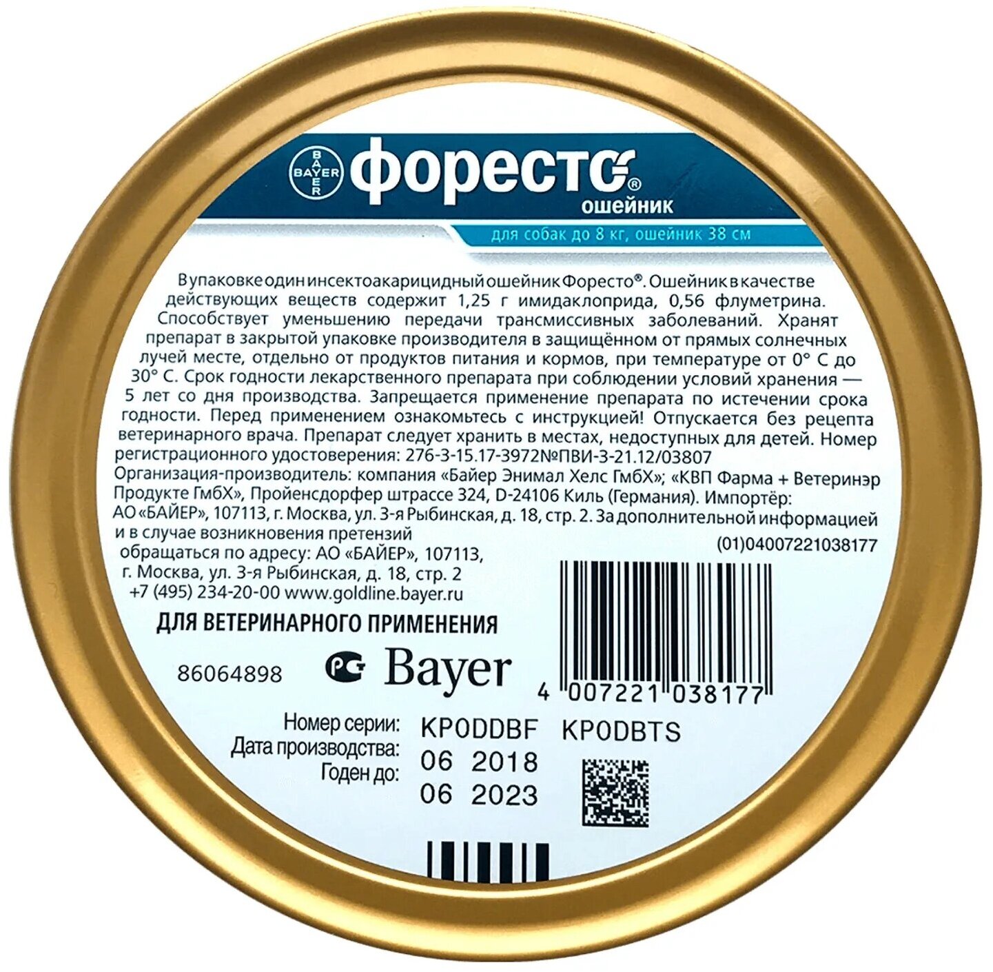 Модель: Foresto до 8кг от клещей и блох, защита 8 месяцев 38см