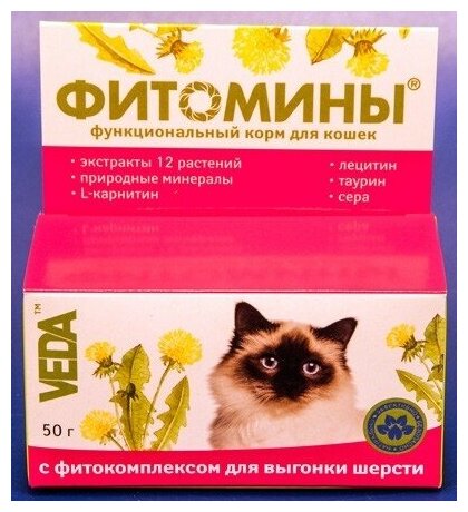 Функциональный корм для кошек ВЕДА ФИТОМИНЫ для вывода шерсти 100таб. (размер: 0.05)