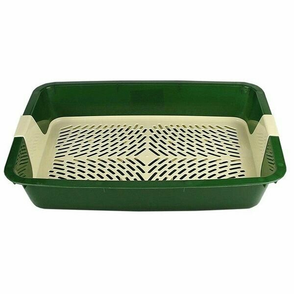 Туалет для кошек с сеткой и бортиком размером 41х31х8 см. Наличие бортика предотвращает разбрасывание наполнителя. Наполнитель можно насыпать непосредственно в лоток, можно под сетку, а можно оставить лоток пустым. Материал: полипропилен.