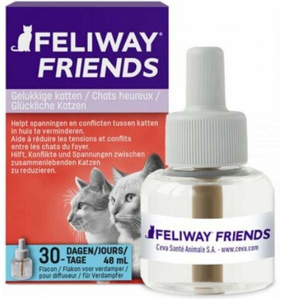 ФЕЛИВЕЙ ФРЭНДС снижает конфликты и устраняет напряжение между кошками при групповом содержании. ФЕЛИВЕЙ ФРЭНДС – это первое немедикаментозное средство, которое помогает кошкам гармонично жить вместе в одном доме. ФЕЛИВЕЙ ФРЭНДС можно использовать дополнительно при коррекции поведения.