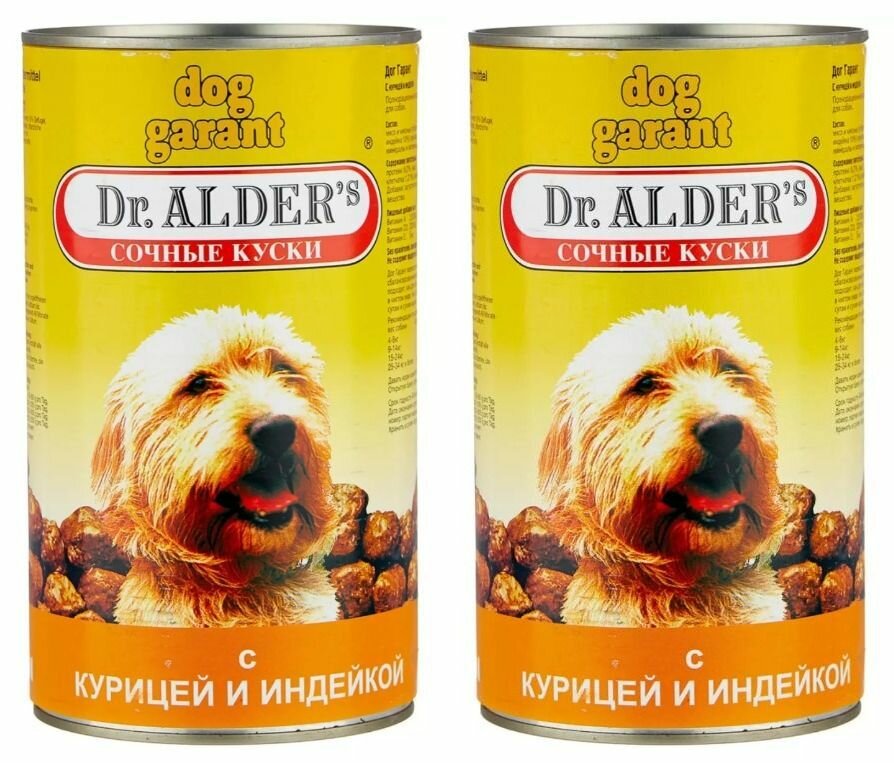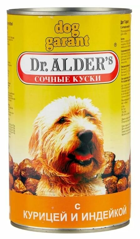 Корм для собак Dr. ALDER`s Dr. Alder's Дог Гарант сочные кусочки в соусе Курица, индейка конс. 1230г