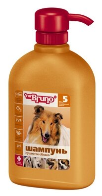 Шампунь-кондиционер Мистер Бруно «Пушистое облако» рекомендуется использовать для ухода за собаками с густым подшерстком или сильно загрязненной шерстью