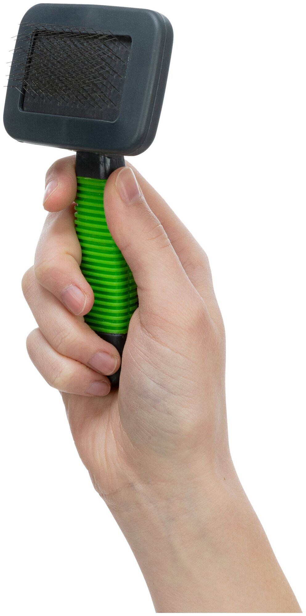 Пуходерка для пушистых грызунов. На мягкой резиновой основе расположена щетина из тонких гнутых металлических зубчиков. Их форма и расположение не царапают кожные покровы питомца, оказывая легкий приятный массаж. Пуходерка мягко удаляет отмершие волоски, не задевая здоровый остевой волос. Так вы облегчаете животному процесс линьки и упрощаете уборку.Материал зубчиков - нержавеющая сталь. Материал ручки - прочный пластик с антискользящей вставкой. Таким образом, ручка не будет выскальзывать из рук, даже если они влажные. В комплекте идет специальное устройство для быстрого удаления шерсти с рабочей поверхности.