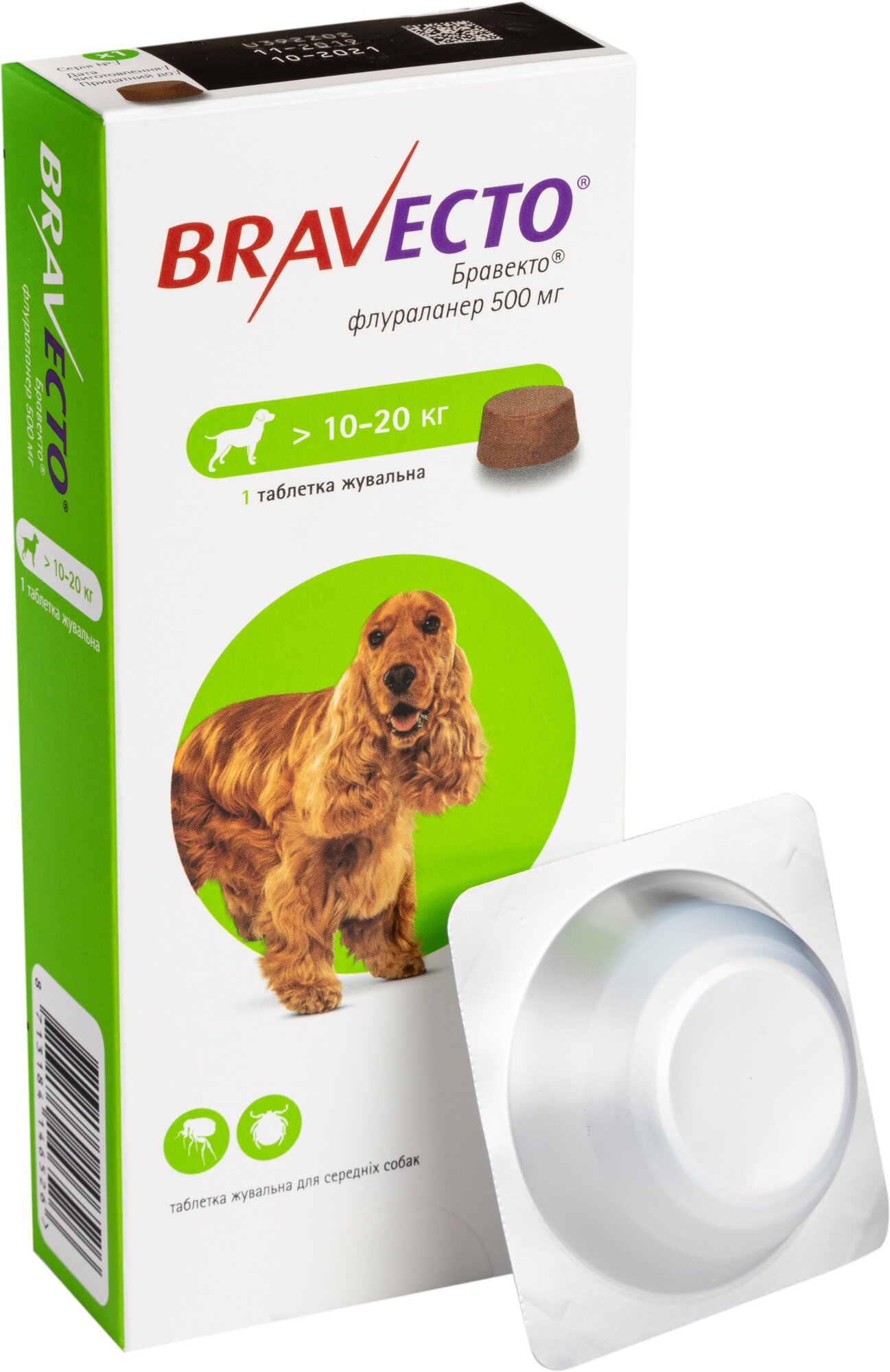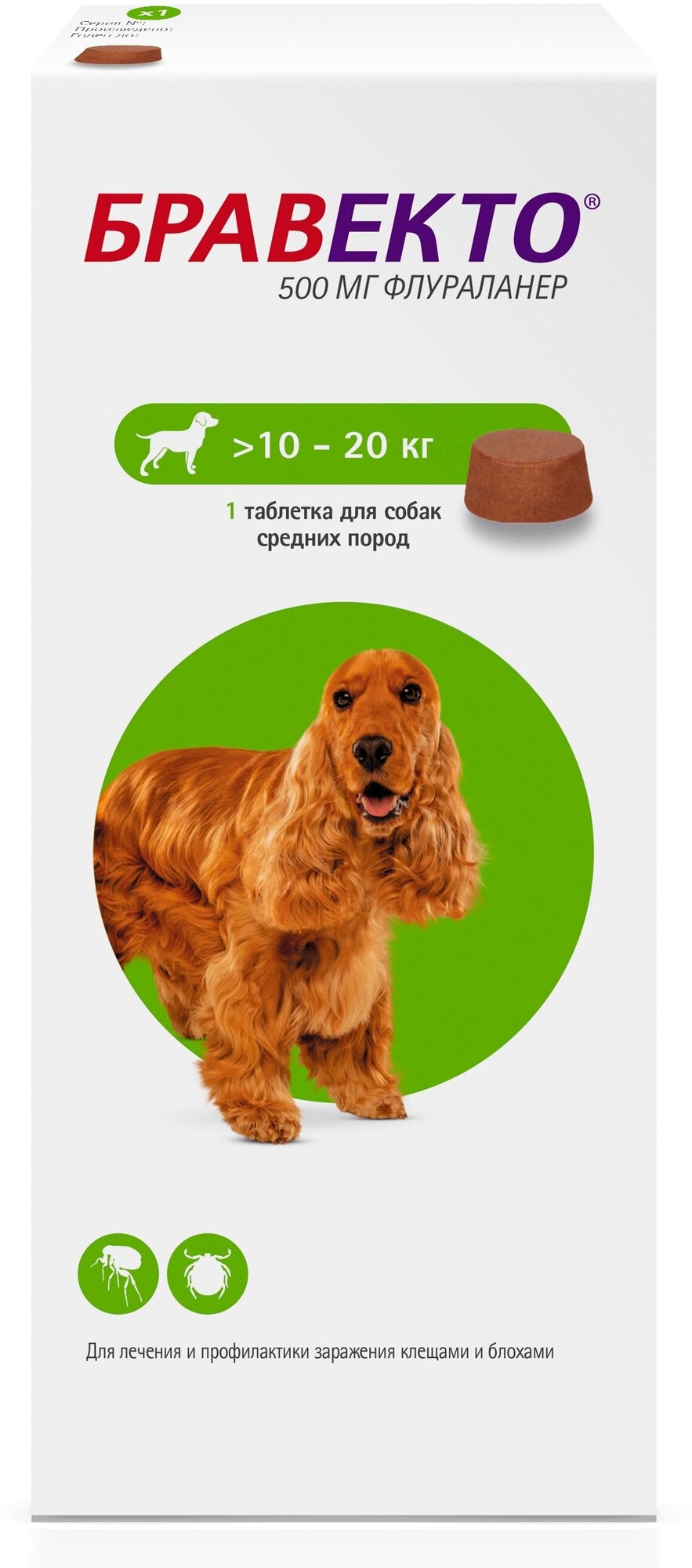 Модель: Бравекто от блох и клещей 10-20 килограмм, 1таб на 3мес. 500мг