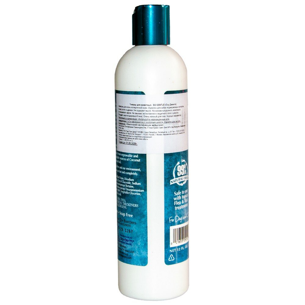 SO-GENTLE™ протестирован методом In Vitro. Это исключительно мягкий гипоаллергенный кондиционирующий шампунь, который идеально подойдет для склонных к аллергии собак, кошек, щенков и котят. Этот натуральный шампунь чистит тщательно, легко, не смывая натуральных защитных масел с кожи и шерсти. Придает шерсти великолепное здоровое сияние. Смывается быстро и полностью, не оставляя раздражения. В состав входят Кокосовое, Пальмовое и Кукурузное масла. Не содержит отдушек, красящих веществ, парабенов, загустителей и широко известных аллергенов. Не смывает активных действующих ингредиентов средств защиты от блох. Рекомендован лучшими заводчиками и профессиональными грумерами мира. Не тестирован на животных. Не содержит мыла.