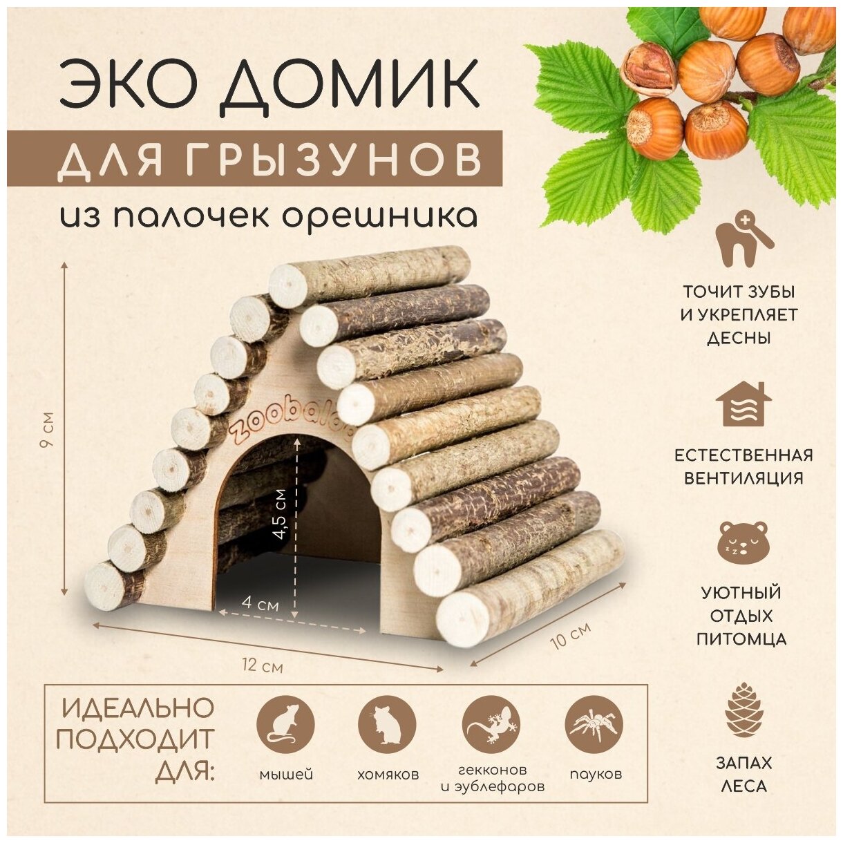 Домик для грызунов ZOOBALOO дерево треугольный малый 13х10х10см