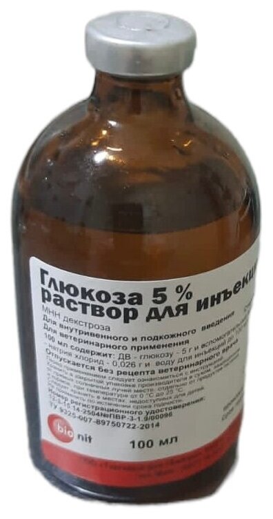Глюкоза — один из наиболее легко усвояемых сахаров. Она хорошо всасывается в кровь, а избыток ее поступает в печень и мышцы, где превращается в гликоген. В организме она распадается с образованием энергии, которая обеспечивает тепло, работу мышц и других тканей. Глюкоза также стимулирует синтез гормонов и ферментов в организме животных, повышает защитные силы организма. При внутривенном введении гипертонического раствора глюкозы повышается осмотическое давление крови, усиливается ток жидкости из тканей в кровь, повышаются процессы обмена, улучшается дезинтоксикационная функция печени, усиливается сократительная деятельность сердечной мышцы, расширяются сосуды, увеличивается диурез. Токсикоинфекции, инфекционные заболевания, различные интоксикации (отравления наркотиками, синильной кислотой и ее солями, окисью углерода, анилином, мышьяковистым водородом и другими веществами), заболевания печени (гепатит, цирроз, дистрофия и атрофия печени), декомпенсация сердечной деятельности, отек легких, геморрагический диатез и многие другие патологические состояния. У жвачных животных назначают при желудочно-кишечных заболеваниях с явлениями интоксикации, гипотонии, атонии преджелудков, а также при ацетонемии, послеродовой гемоглобинурии, кетонурии и токсемии. Растворы глюкозы назначают слабым и истощенным животным как энергетическое и диетическое средство. Изотонический (5%) раствор глюкозы вводят подкожно и внутривенно. Объем дозы и сроки применения зависят от массы животного и течения болезни.