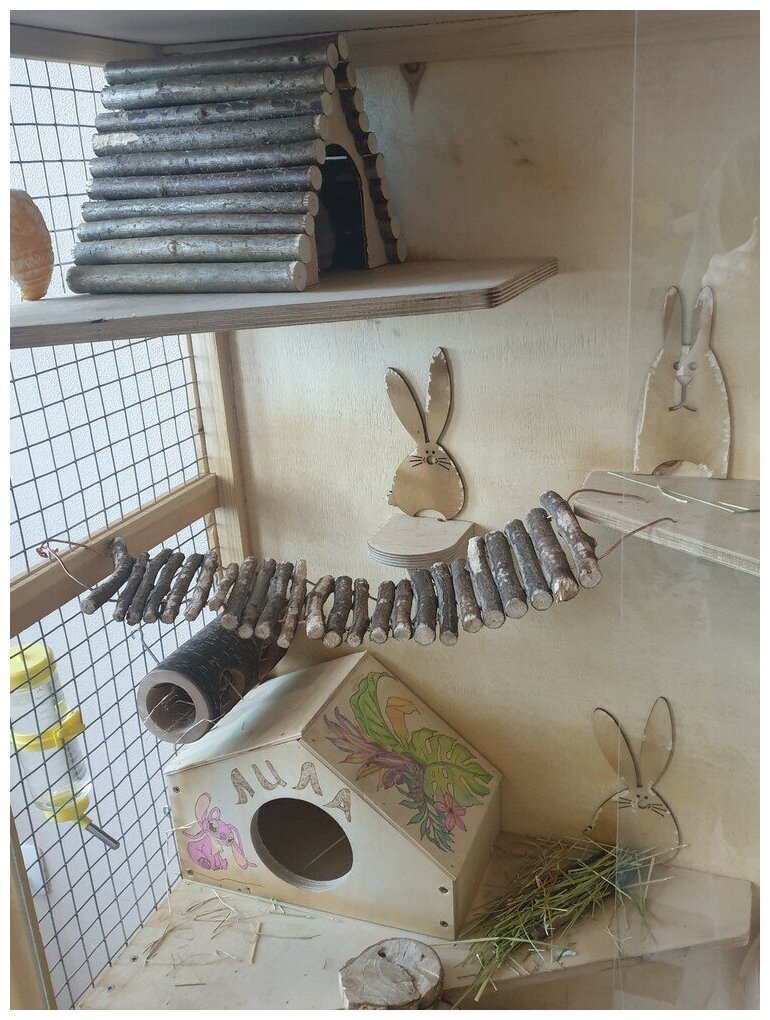 Состав: натуральные веточки лесного ореха, фанера. Для грызунов жизненно важно стачивать резцы, так как у многих из них они растут всю жизнь, иногда верхние резцы растут со скоростью до 2 мм в неделю и должны стачиваться при контакте с пищей, естественной средой обитания или игры с натуральными материалами. Ветви орешника являются естественным средством для стачивания зубов у грызунов и кроликов. Изгрызание ветвей орешника гарантирует ежедневный уход за зубами животных, при этом обеспечивая занятия питомцам на длительное время. Ветви деревьев - естественные друзья грызунов и кроликов, которые помогают им содержать рот и зубы здоровыми, а орешник - естесственый "напильник" для подавляющего числа видов, содержащихся в квартирах. Заведите вместе с домиком природную "зубную щетку" для полости рта зверька, так ему необходимую. Как занять домашнего любимца надолго, чтобы он не скучал? Позвольте маленькому созданию наблюдать за всем происходящим с крыши, это позволит избежать проблем с нервной системой и будет дополнением к прогулке по клетке. Зверушки любят тусить на крышах домиков, что обеспечивает им инстинктивно необходимый обзор. На домик легко забраться не травмировав лапки. Подходит для крупных питомцев, выдерживает большие нагрузки. В домике отличная естественная вентиляция, по комнате вместо запаха животного будет распространяться запах леса, что позволит сладко спать и вам и вашему питомцу. Надежное укрытие для вашего любимца, идеальное место для сна и отдыха! Позволяет прекрасно отдохнуть и выспаться, укрывшись от посторонних глаз. Внутри тепло, свежо и вкусно пахнет, материалы изделия будут подавлять запах от животного и способствовать нормальному аромату в комнате. Условия хранения: в сухом прохладном помещении.