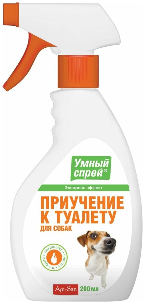 Умный СПРЕЙ® приучение К туалету для собак, 200 МЛ Умный Спрей приучение к туалету для собак — средство для выработки у собак и кошек рефлекса испражняться в специально отведенном для этого месте. Препарат позволяет сохранить чистоту в доме и ускорить приучение питомца к лотку или определенному месту на улице. Особенности и преимущества: • Эффективное воспитание привычки справлять нужду в специально отведенном для этого месте. • Поддержание чистоты в доме. Действие зоогигиенического средства основано на воспроизведении естественного запаха испражнений, что облегчает задачу выбора кошкой места для мочеиспускания и дефекации. Зоогигиеническое средство используют для выработки у животных рефлекса испражняться в специально отведенном месте. Приучение к туалету для кошек позволяет сохранить чистоту в доме и ускорить приучение питомца к лотку или определенному месту на улице.