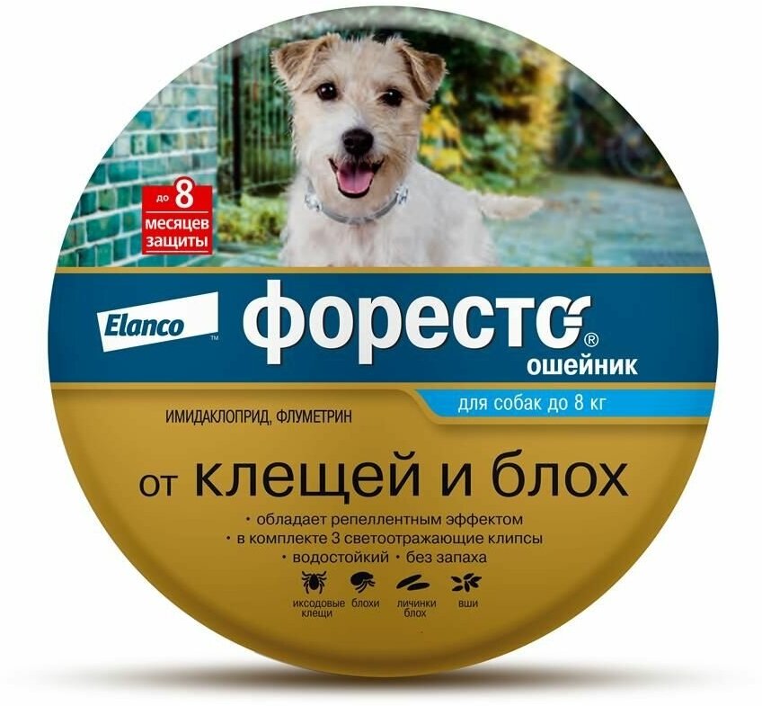 Ошейник Форесто® – продукт, помогающий вам защитить собаку от укусов клещей и блох на 240 дней. Носить ошейник рекомендовано постоянно. Просто наденьте ошейник на собаку. Препарат немецкого производителя Bayer.