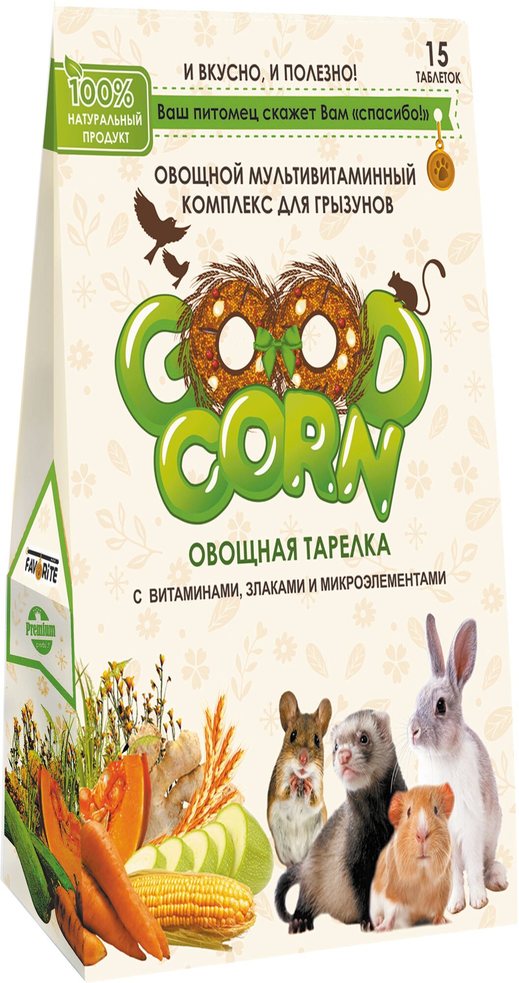 Мультивитаминный комплекс GOOD CORN для Грызунов "Овощная тарелка", 15 таб