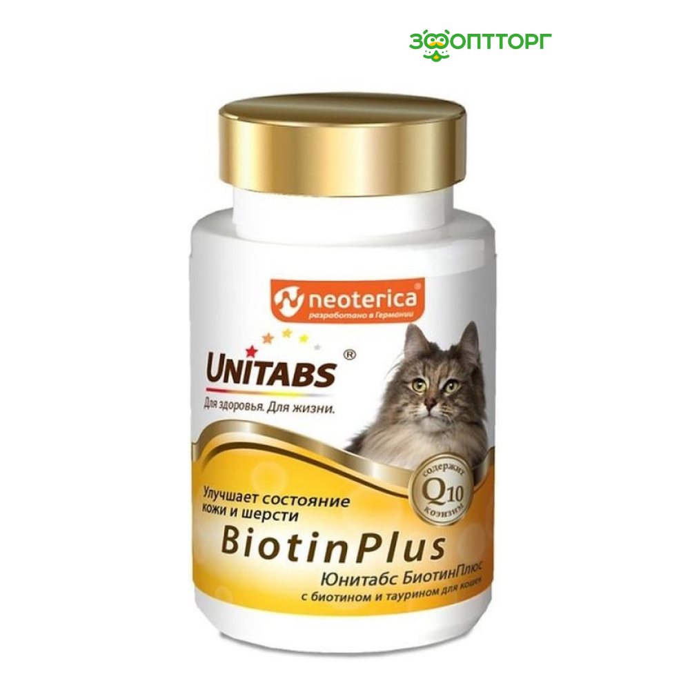 Витамины UNITABS BiotinPlus с Q10 для кошек 120 таб.