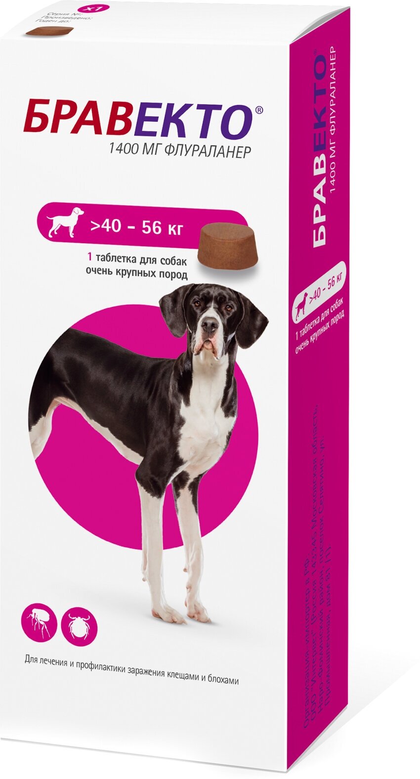 Модель: Бравекто от блох и клещей 40-56 килограмм, 1таб на 3мес. 1400мг