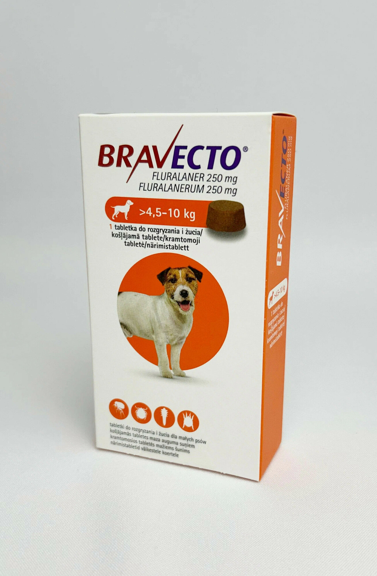 - Жевательная таблетка Bravecto от блох и клещей для собак 4,5-10 кг весом