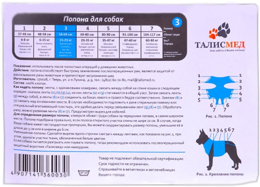 Сервис сравнения цен СкидкаГИД предлагает сравнить цены на товар «Попона послеоперационная ТАЛИСМЕД №3 обхват груди 58-69см для собак 15-20 килограмм (размер: m)»