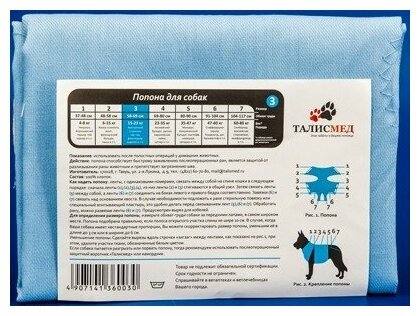 Попона послеоперационная ТАЛИСМЕД №3 обхват груди 58-69см для собак 15-20 килограмм (размер: m)