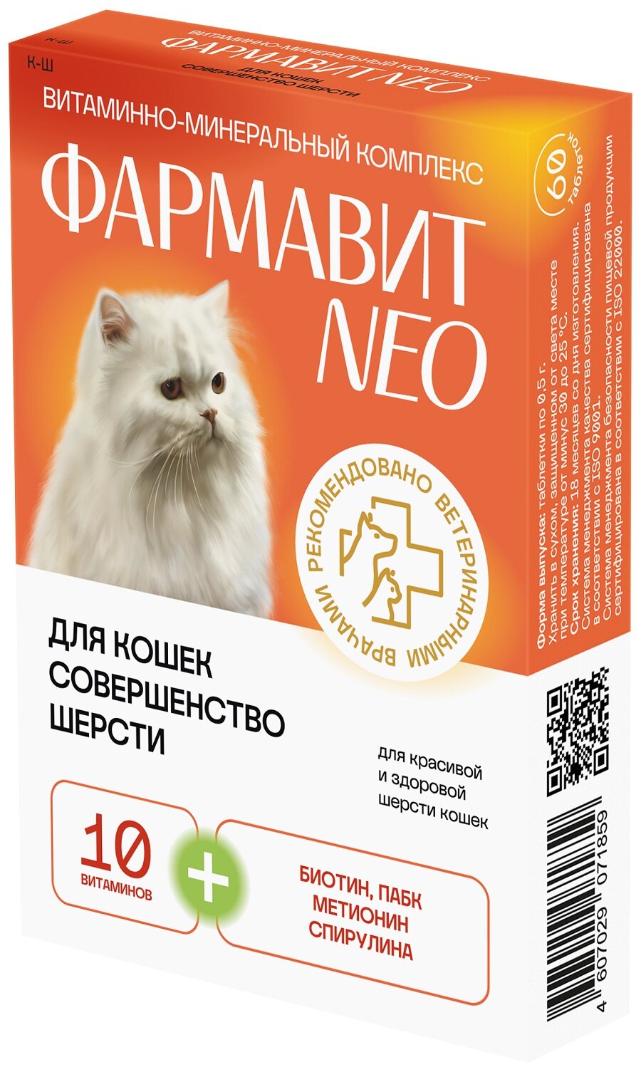 Витамины для кошек НПП ФАРМАКС ФАРМАВИТ NEO К-Ш Совершенство шерсти 60 таб (размер: 0.032)