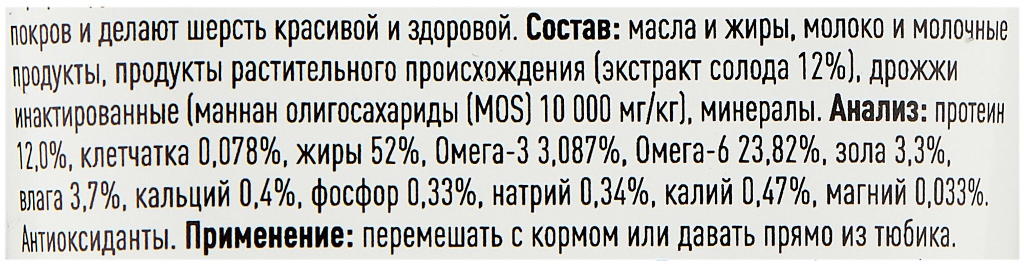 | Состав | Масла и жиры, молоко и молочные продукты, продукты растительного происхождения (экстракт солода 12%), дрожжи инактивированные (маннанолигосахариды (MOS) 10 000 мг/кг), минералы |